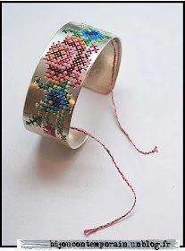 I ADORE the “old school” cross-stitch mixed with metal! I think it’s one of the greatest contrasts that I've seen in a long time – and I’m all about contrast! Since the bracelet was part of an art exhibit (and rightfully so) I quit looking for where to buy it and decided to use it as my PinSpiration.